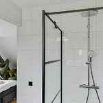 La Bungalow In Texel Near National Park Dunes dispone di un bagno con un bagno con WC separato e una doccia. Ci sono anche essiccatori e teli da bagno.